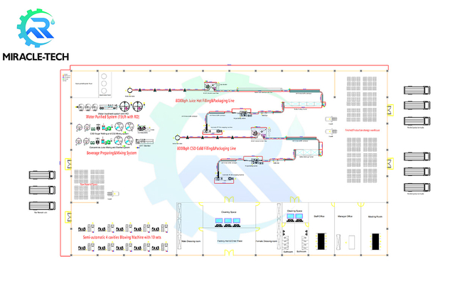 We're not only the equipment supplier but also the project designer. We can help you for your designing work, such as bottle design, cap design, label design, factory layout, machine layout and so on. Your satisfaction is our greatest motivation. Miracle-Tech will help you achieve !